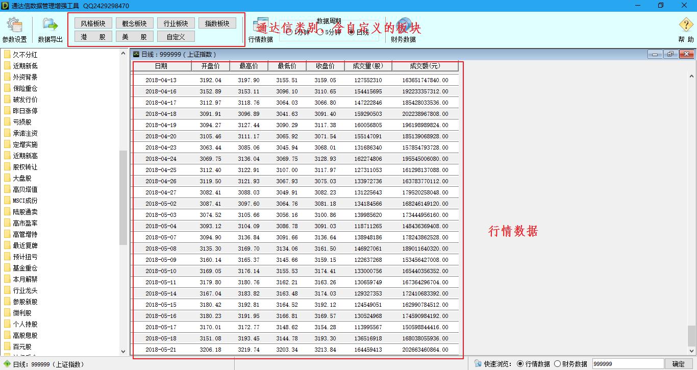 软件与通达信的板块分类、自定义板块实现了同步!