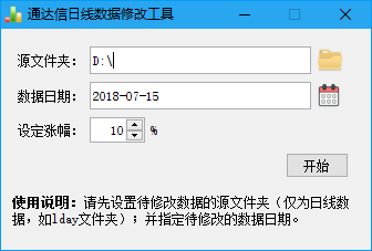 需求说明:1)可以对指定日期的数据进行修改,2)修改的数据为前一日收盘价的指定上涨或下跌幅度(默认为涨停)。