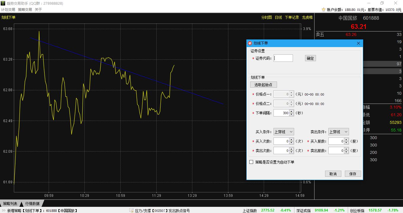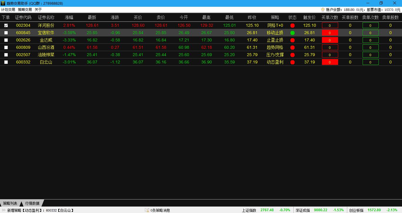 友情提示:股票趋势交易助手采用了同花顺下单客户单进行自动交易,在稳定性和速度方面达不到交易接口函数,若用于实盘交易,可能对您的资金造成损失,请斟酌。