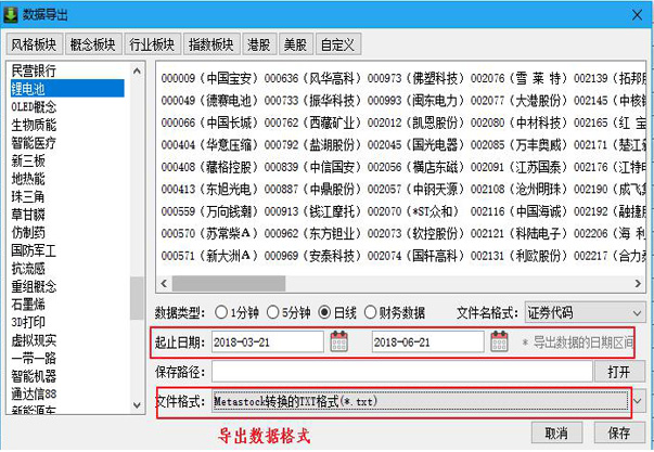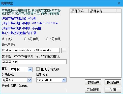 图3 通达信数据管理增强工具的数据导出